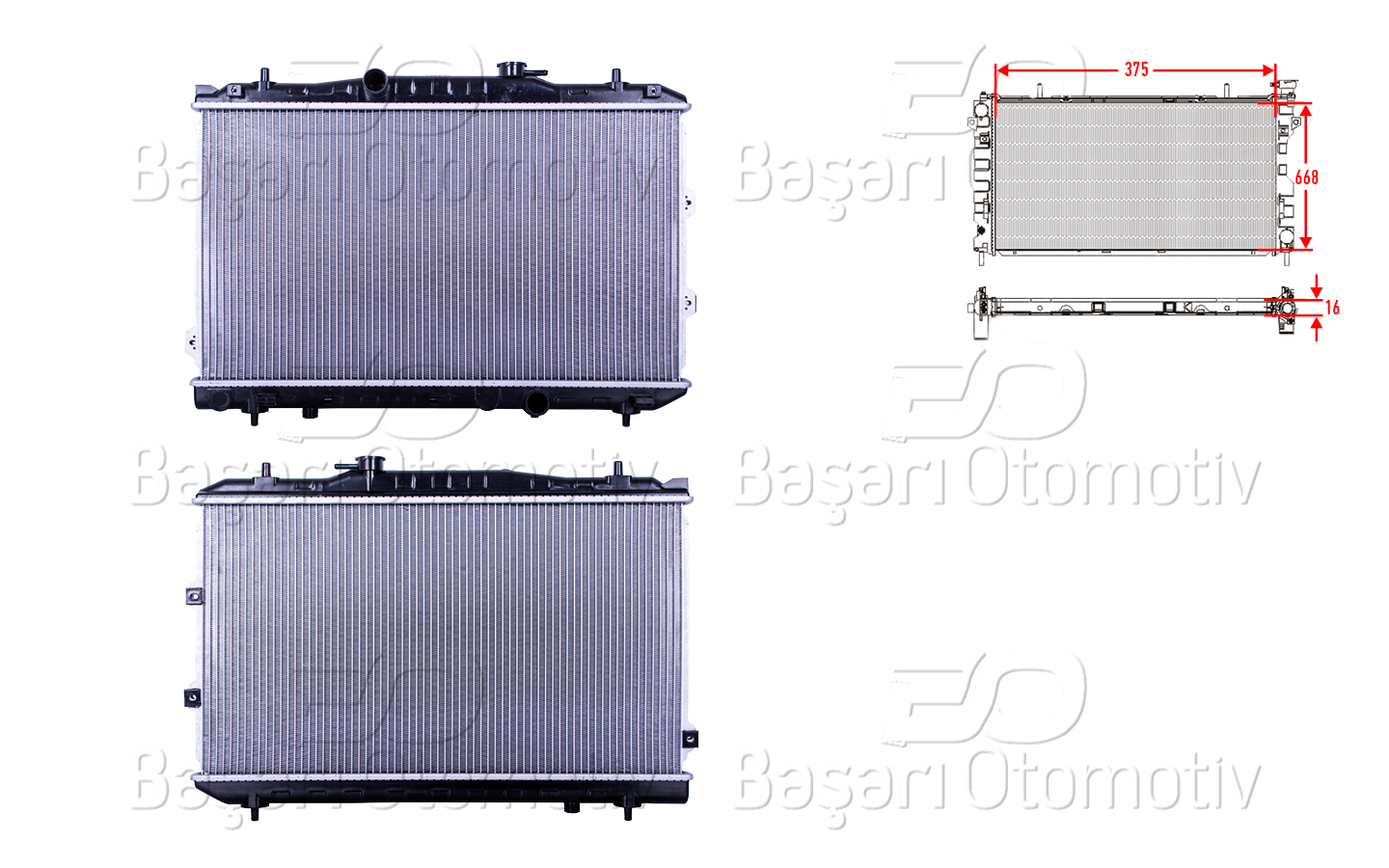 WISCO 3114074-00 | Su Radyatörü Brazing Mt 375X668x16 Kia Cerato 1 (Ld) 04-09