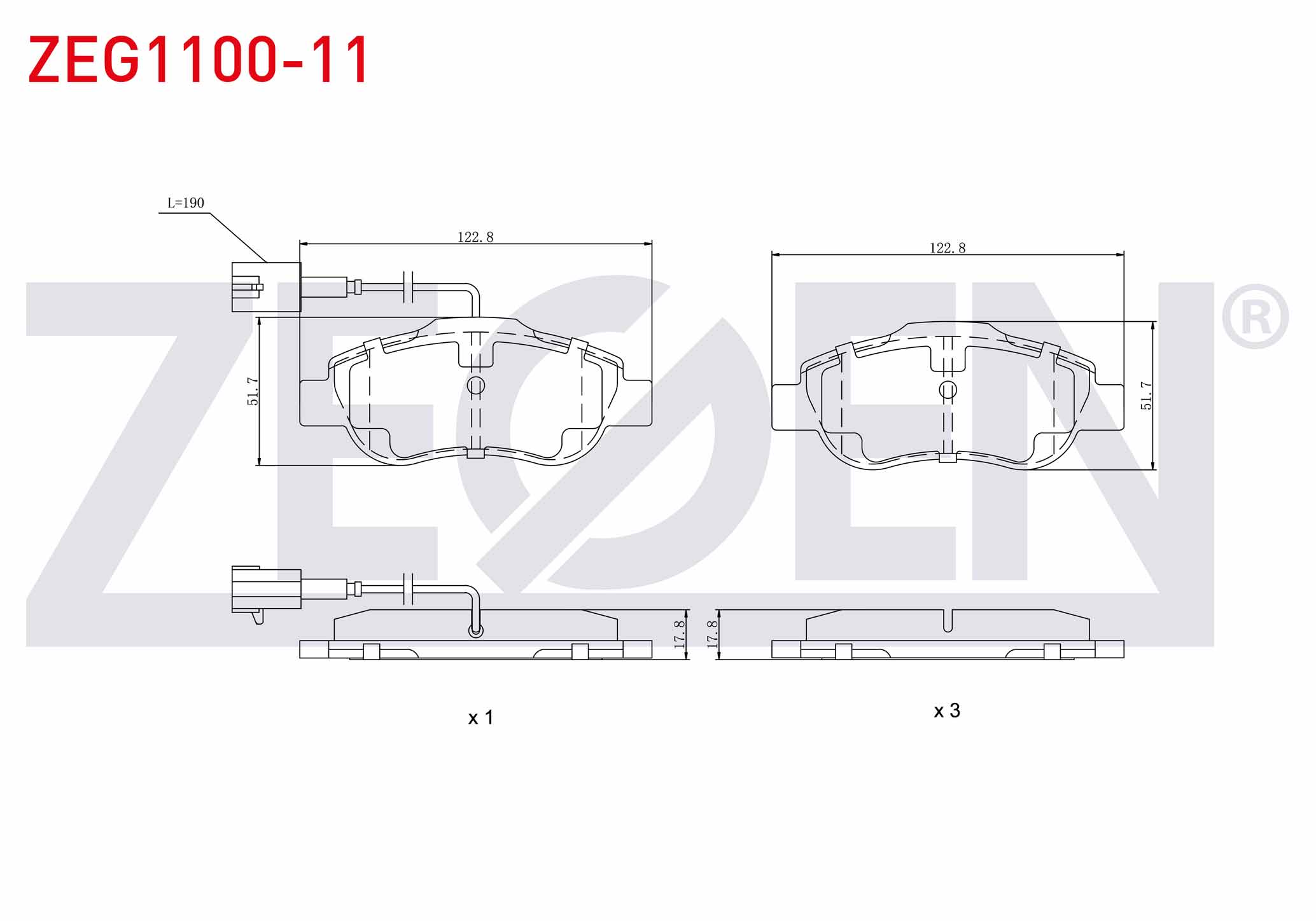ZEGEN ZEG1100-11 | Fren Balata Ön Fişli Fiat Fiorino 1.3 Mjt 2007-/ Linea 1.3 Mjt 2007-/ Linea 1.4 2007-/ Doblo 1.3 Mjt 2001-2010 / G.Punto 1.3 Mjt 2005-2012 / Citroen Nemo 1.4 HDI 2007-/ Ford Ka 1.2İ 2008 -