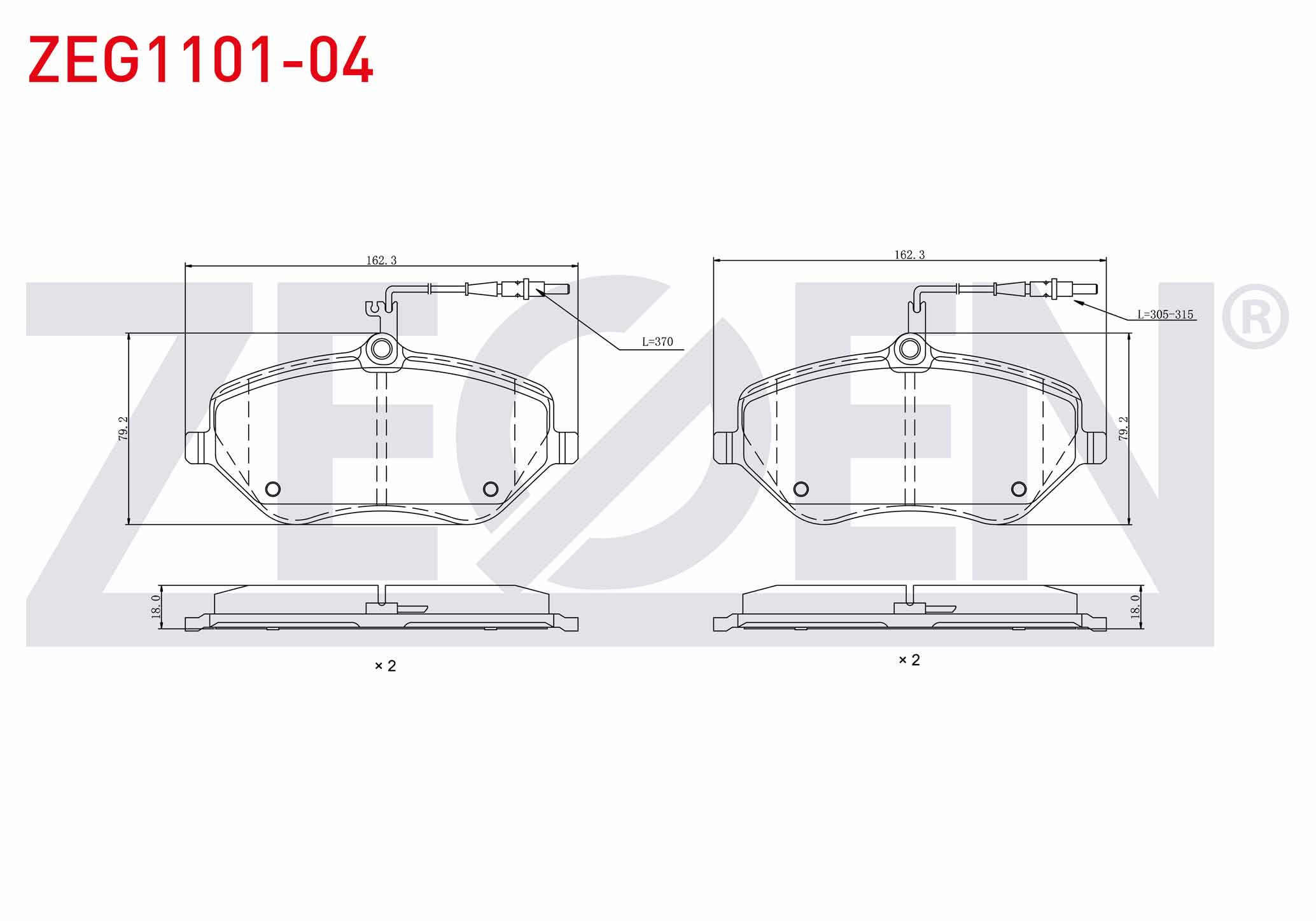 ZEGEN ZEG1101-04 | Fren Balata Ön Fişli Peugeot 407 (6D) 2.0 HDI 2004-2011 / Peugeot 407 (6D) 2.0İ 2004-2011 / Peugeot 607 (9D,9U) 2.0 HDI 2000-/ Citroen C6 (TD) 3.0 V6 2005-/ Peugeot 607 (9D,9U) 3.0İ 2000 -