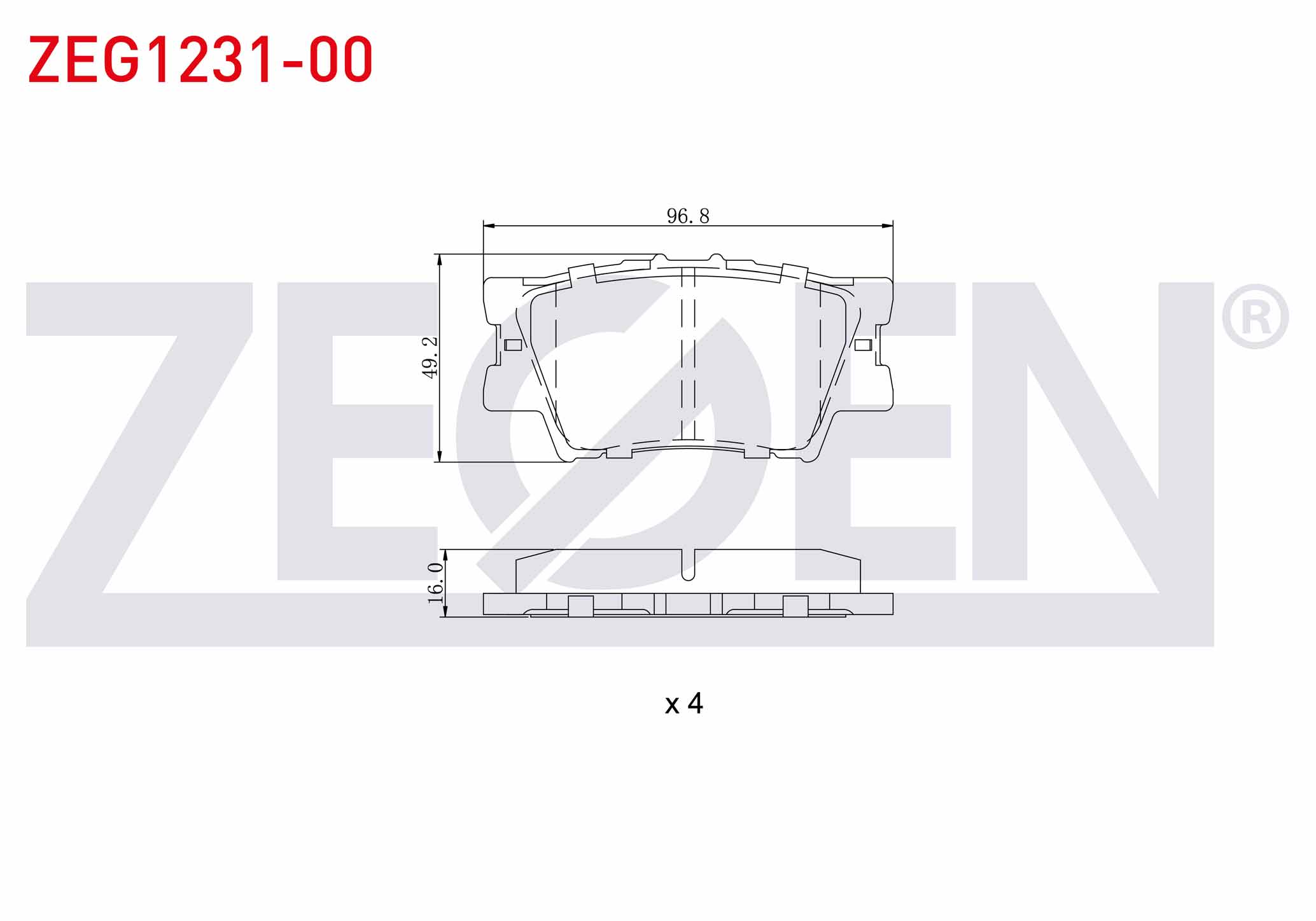 ZEGEN ZEG1231-00 | Fren Balata Arka Toyota Rav4 III (Aca3_, Ace_, Ala3_, Gsa3_, Zsa3_) 2.0 Vvt-I 2005-2012 / Rav4 III 2.2 D 2005-2012 / Rav4 III 2.2 D-4D 2005-2012 / Rav4 III 2.0 Vvt-I 2005-2012
