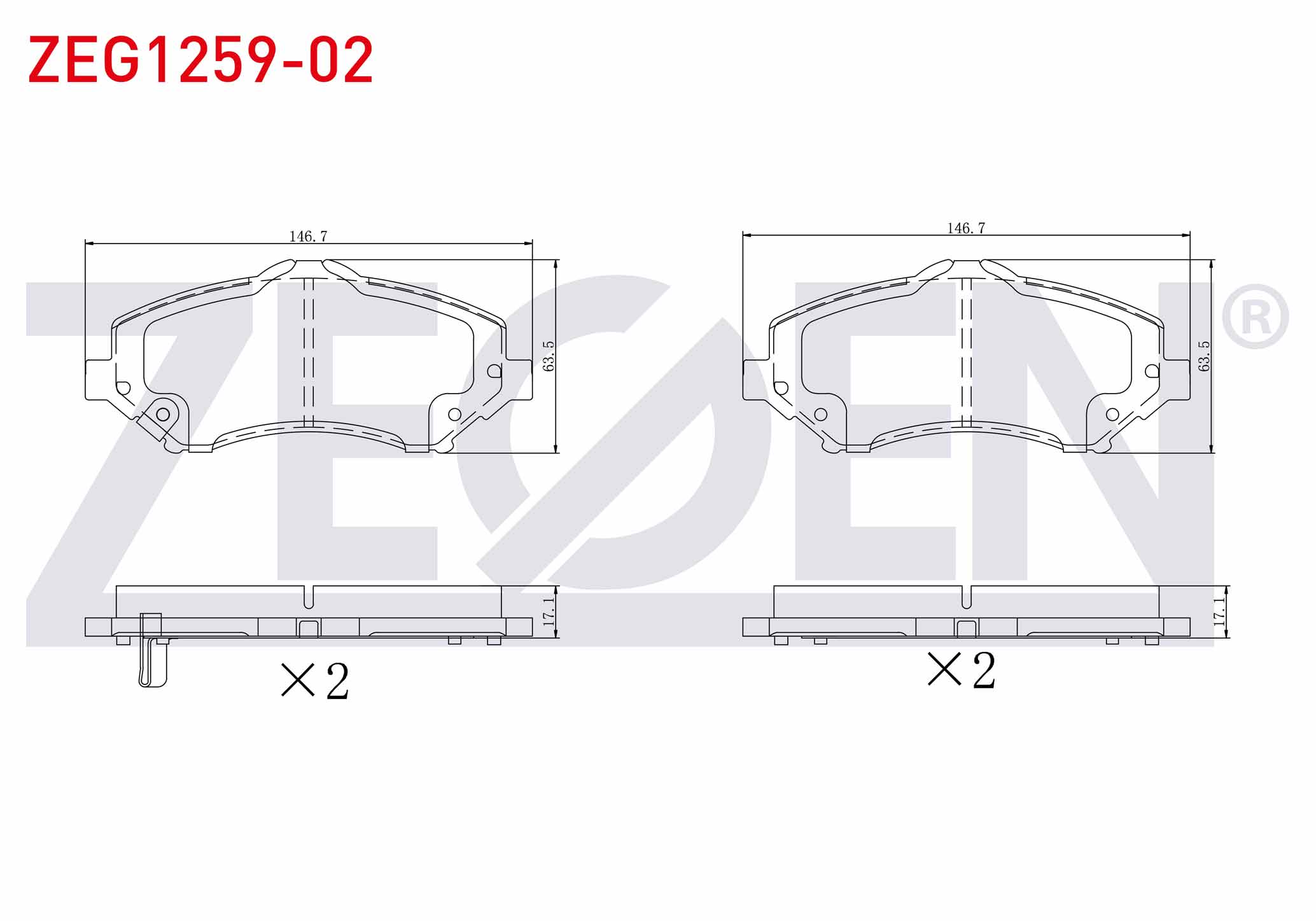 ZEGEN ZEG1259-02 | Fren Balata Ön Ikazlı Fiat Freemont (Jf) 2.0 Mjt 170 Hp 2011-/ Jeep Wrangler III (Jk) 3.8İ V6 2007-/ Chrysler G.Voyager 3.3İ 2008-/ Dodge Nitro 2.8 Crd 4X4 2007 -