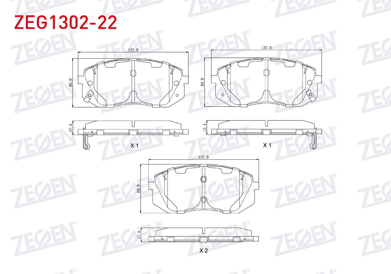 ZEGEN ZEG1302-22 | Fren Balata Ön Ikazlı Tel Delikli Kia Sportage 1.6 GDI 2010-/ Sportage 2.0 CRDI 2010-/ Sportage 2.0 CRDI 2015-/ Sportage 1.6 GDI 2015-/ Hyundai Tucson 1.6 GDI 2015-/ Hyundai Ix35 1.6 GDI 2010 -