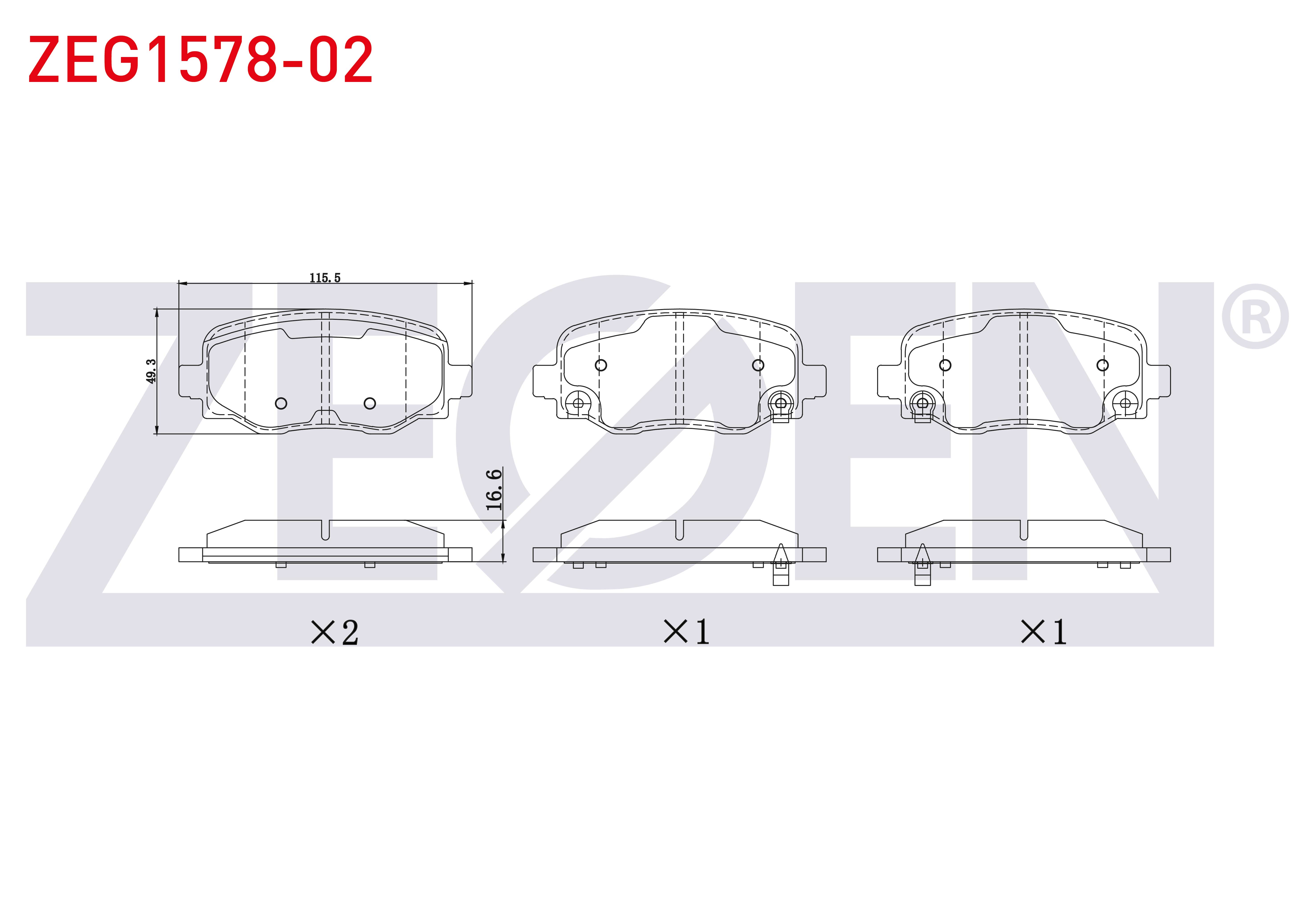 ZEGEN ZEG1578-02 | Fren Balata Arka Ikazlı Fiat 500X 2014-/ Jeep Renegade 2014-/ Cherokee (Kl) 2014-/ Alfa Romeo Tonale 2022 -