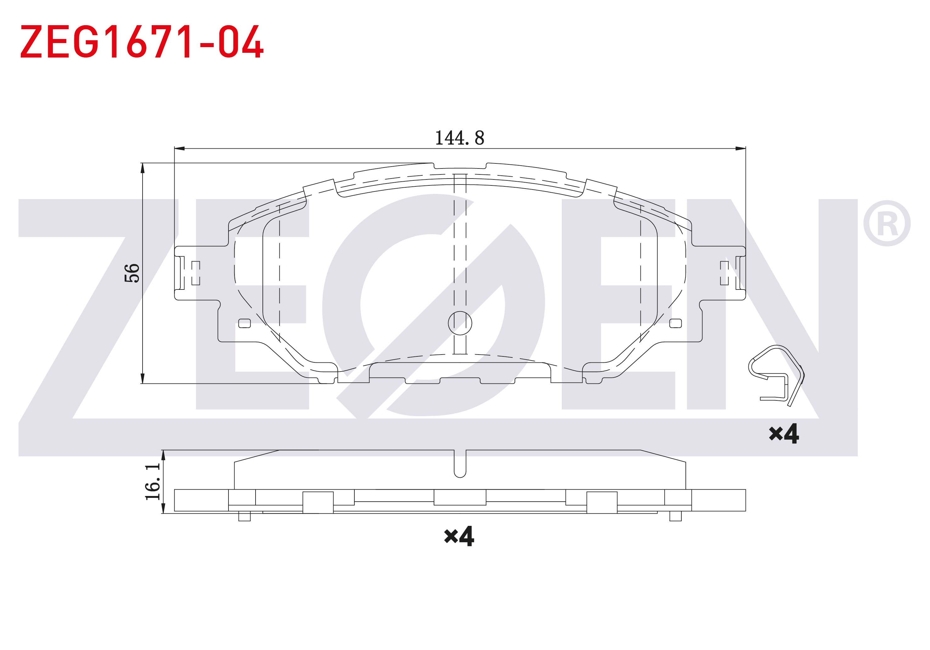 ZEGEN ZEG1671-04 | Fren Balata Ön Toyota Hı-Lux VIII Revo (N1) Pick Up 2.4 D 4X4 Espsız 2015 -
