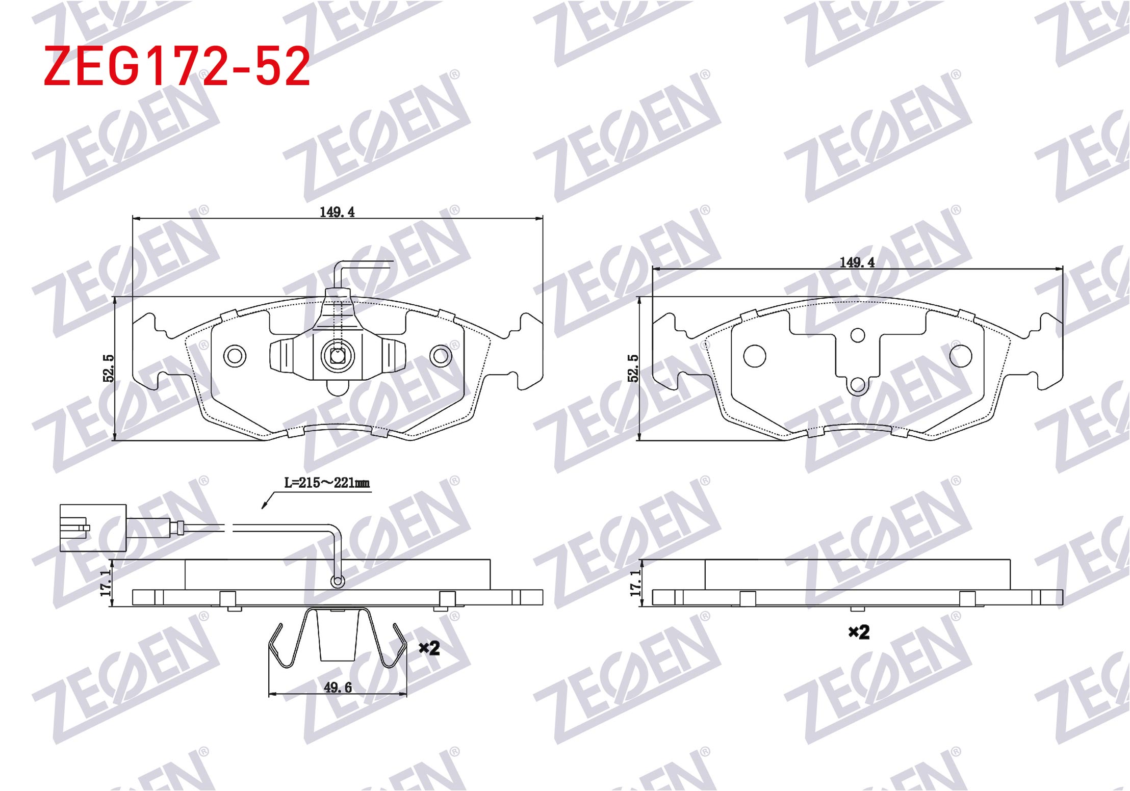 ZEGEN ZEG172-52 | Fren Balata Ön Fişli Fiat G.Punto Evo (199) 1.3 Mjt 2008-2012 / G.Punto Evo (199) 1.2İ 2008-2012 / G.Punto Evo (199) 1.4 2008-2012 / G.Punto Evo (199) 1.6 2008-2012