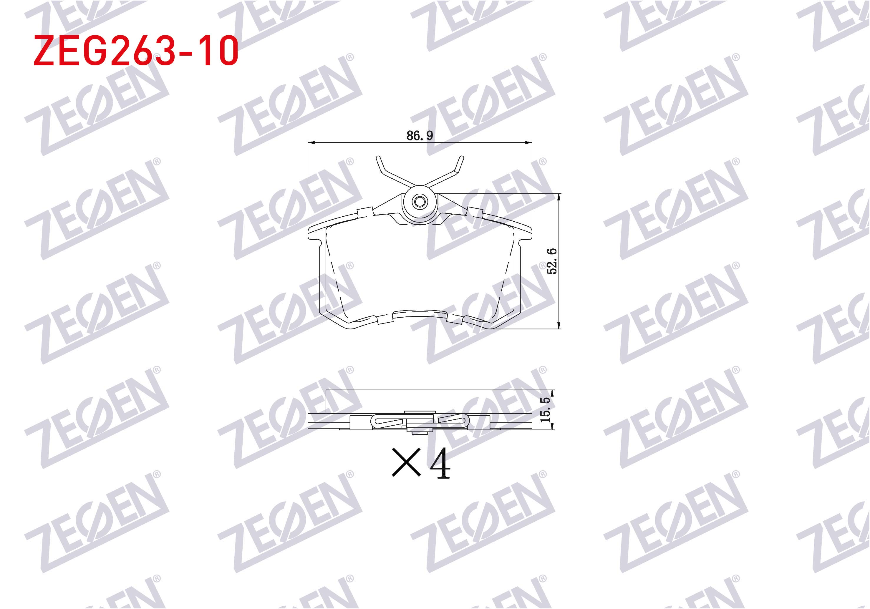 ZEGEN ZEG263-10 | Fren Balata Arka 15,5mm Golf IV-V-VI / Jetta V-VI / Polo III-IV-V-VI / Caddy III / Clio III / Megane III-IV / 207 / 208 / 307 / 308 / Partner / C3 II-III / C4 II / A3 II / A4 II-III / A6 II / Leon II-III / Ibiza III-IV / Crossland