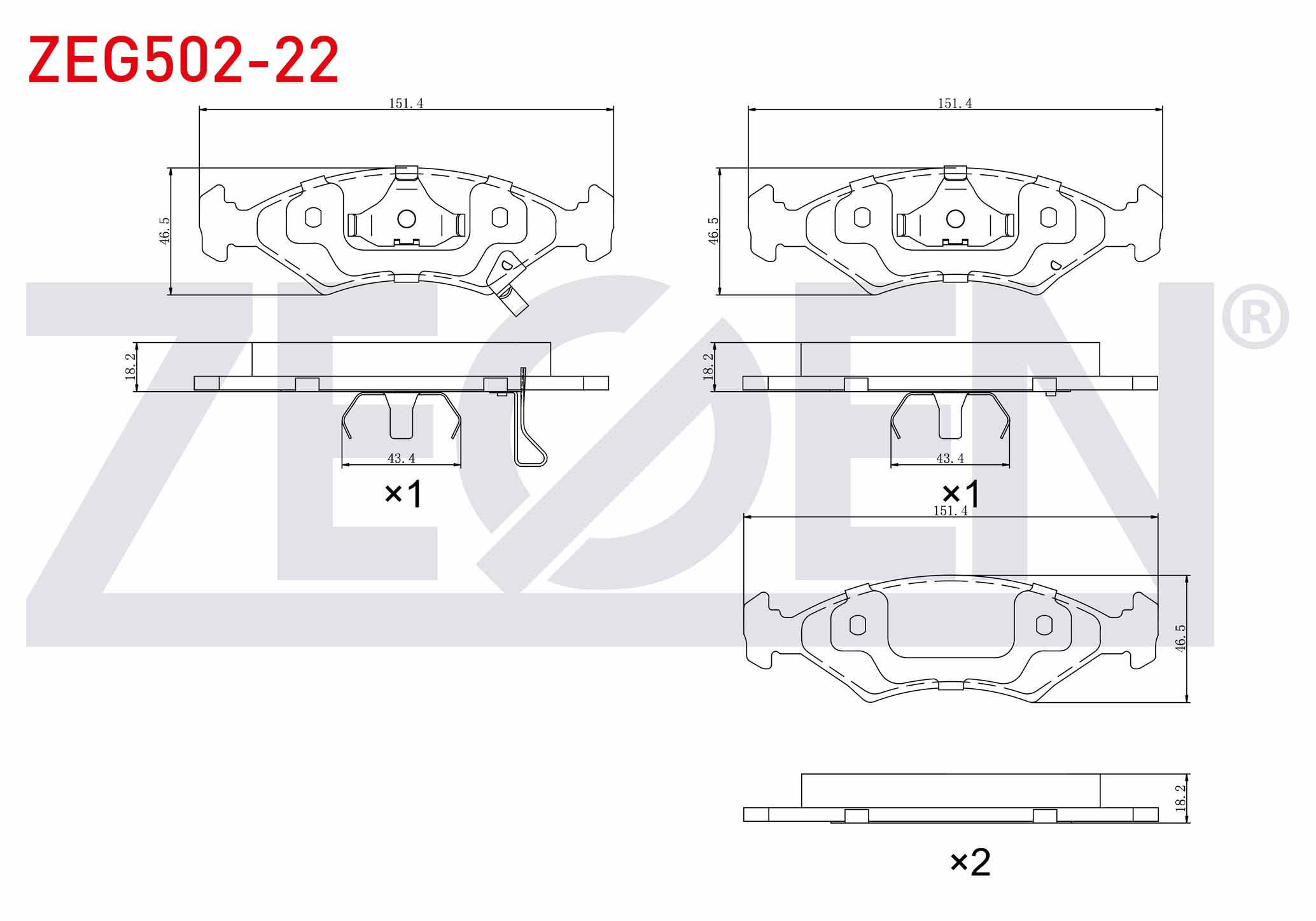 ZEGEN ZEG502-22 | Fren Balata Ön Ikazlı Kia Sephıa (Fa) 1.5İ 16V 1993-2001 / Sephıa (Fa) 1.8İ 16V 1993-2001 / Shuma I (Fb) 1.5İ 16V 1997-2001 / Sportage (K00) 2.0 TD 1994-2004
