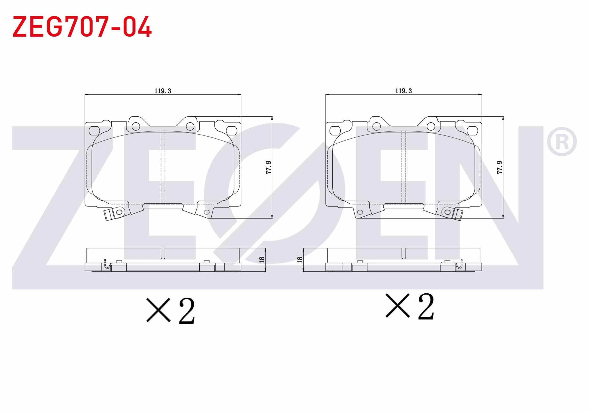 ZEGEN ZEG707-04 | Fren Balata Ön Toyota Land Cruiser 100 (Uzj100) 4.2 TD 1998-2007 / Land Cruiser 100 (Uzj100) 4.7 1998-2007