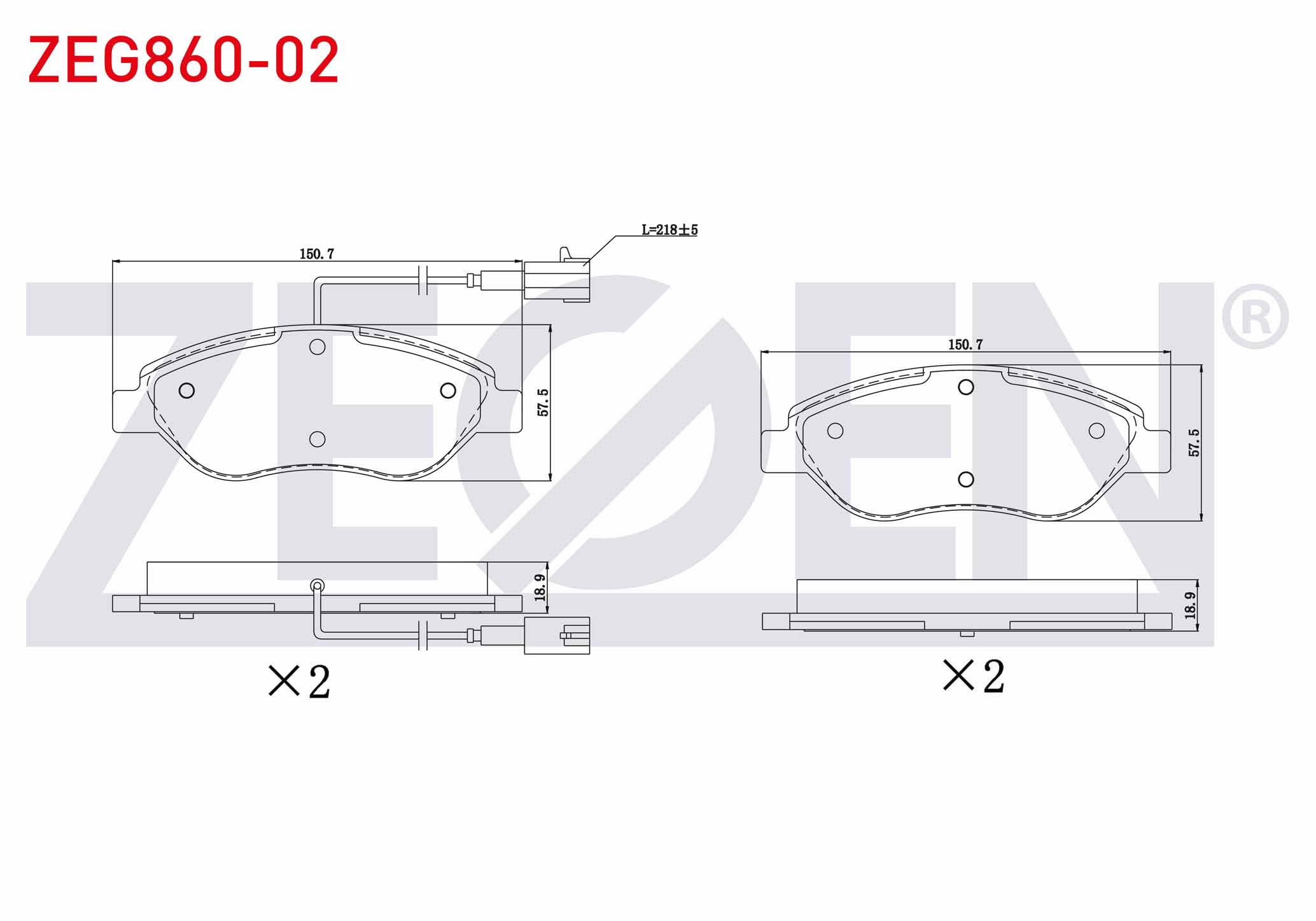 ZEGEN ZEG860-02 | Fren Balata Ön Fişli Fiat Stilo (192) 1.4 16V 2001-2010 / Mıto (955) 1.4 T 2008-/ Mıto (955) 1.3 JTD 2008-/ Mıto (955) 1.6 JTD 2008 -