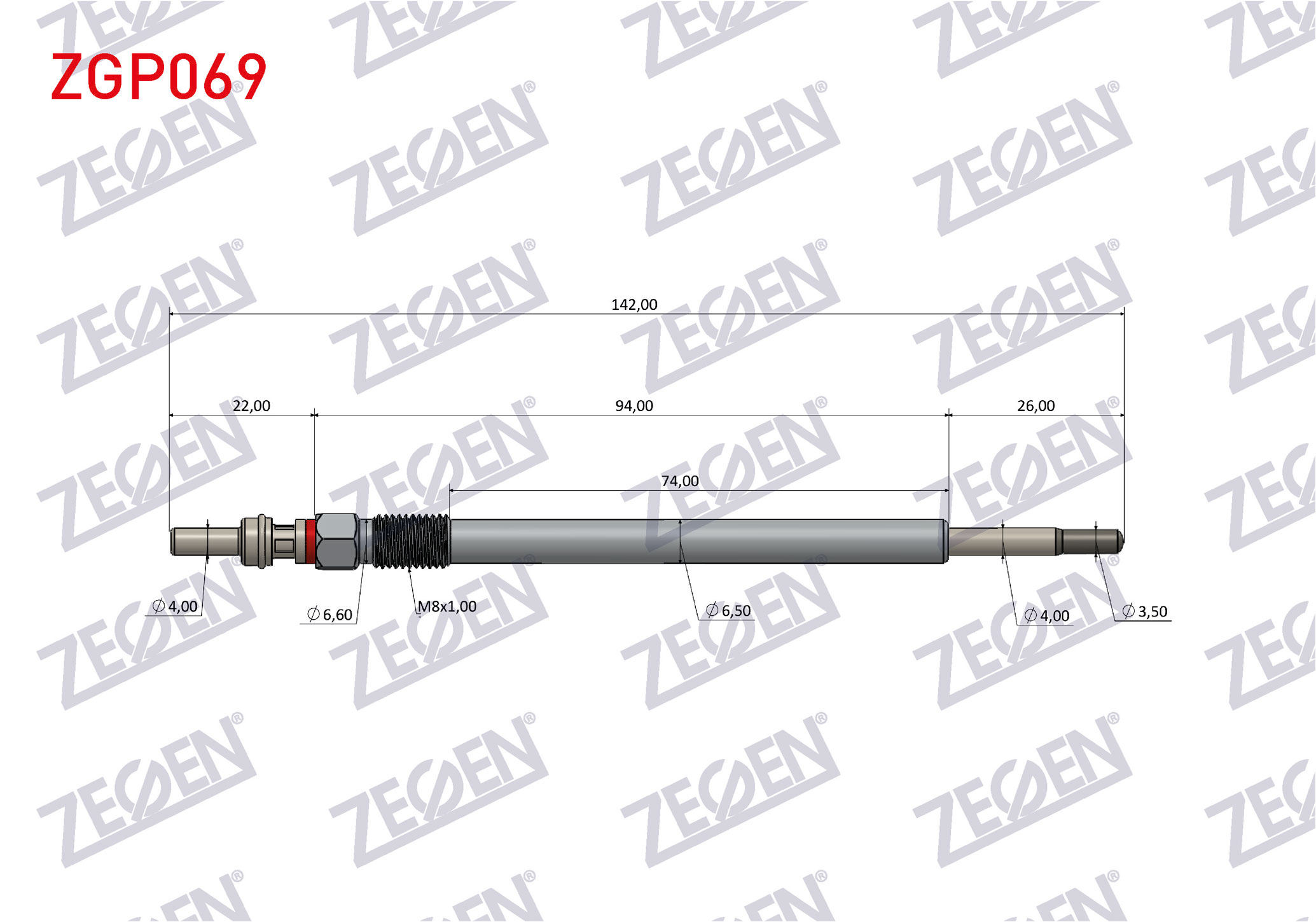ZEGEN ZGP069 | Kızdırma Buji 5V Ford Focus 1.5 TDCI Euro 6 2017-/ Connect 2017-/ Kuga III 2019-/ Puma 2019-/ Peugeot 2008 / 208 / 3008 II / 301 / 308 II / 5008 | 10 Adet
